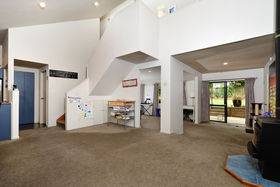 The lower level is spacious and inviting, accommodating an open plan kitchen, dining and living area heated by a traditional wood-burner, as well as a large family lounge. Sweeping cathedral style ceilings further enhance the sense of space and there's easy access via two sets of sliding doors from the lounge out to the sheltered rear deck and fenced gardens for stress-free entertaining all year round. Also on this level you will find the guest toilet, a separate laundry and access to a second covered deck area.