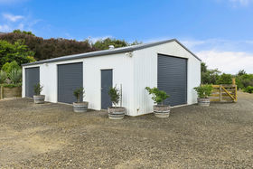 Internal triple car garaging, tons of parking plus the bonus of a large shed. The shed is approx 84 sqm or 12 x 7 sqm. It has 3 roller doors 2 at 3m high x 2.4m wide and the third 3.2m high x 2.8m wide, a useful extra height ideal for the boat.