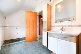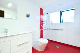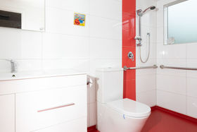 Wheelchair accessible bathroom and shower.